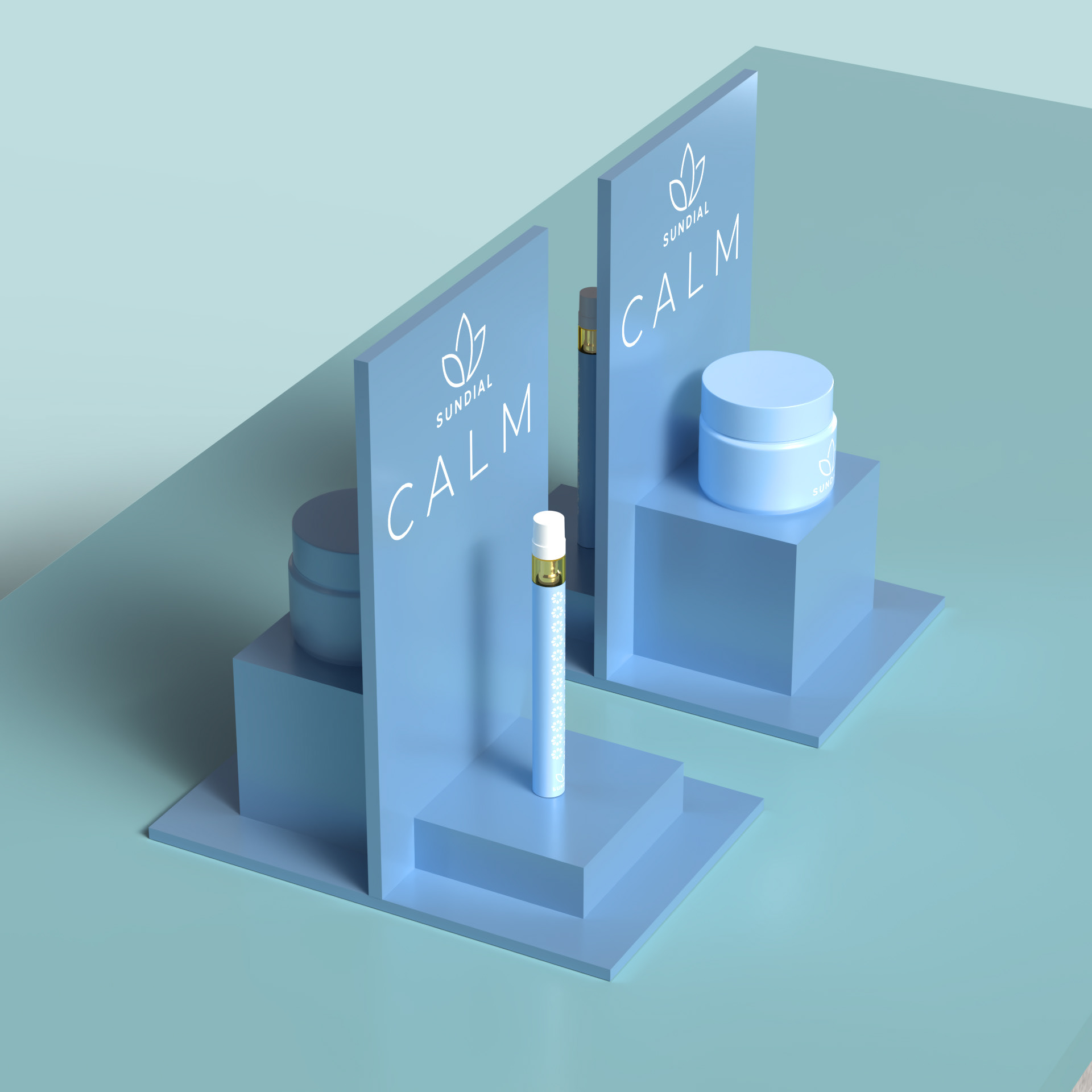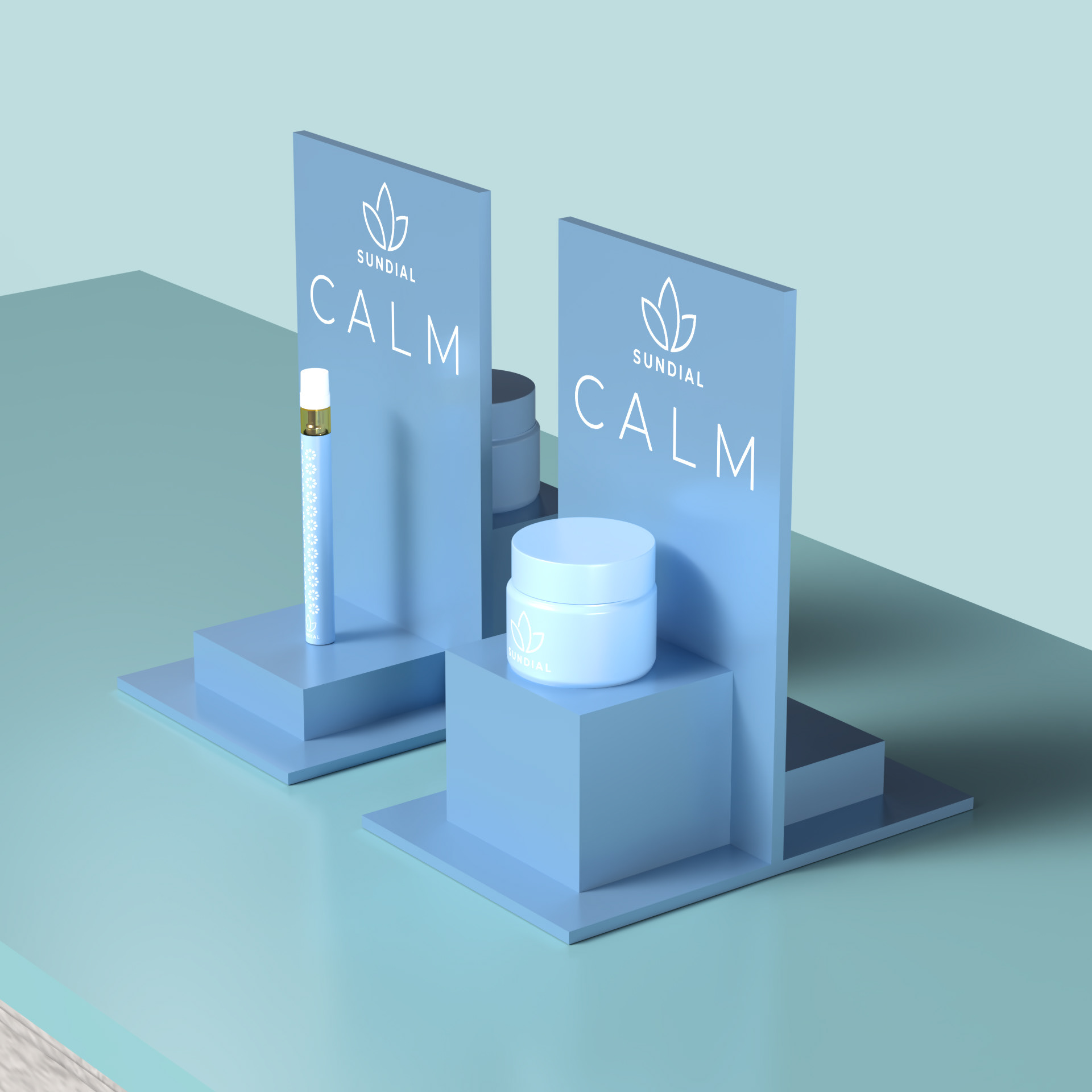 This display was designed to promote the Sundial series: Calm, Lift, Flow, and Ease. This powder-coated metal display featured two risers to accommodate all product types.