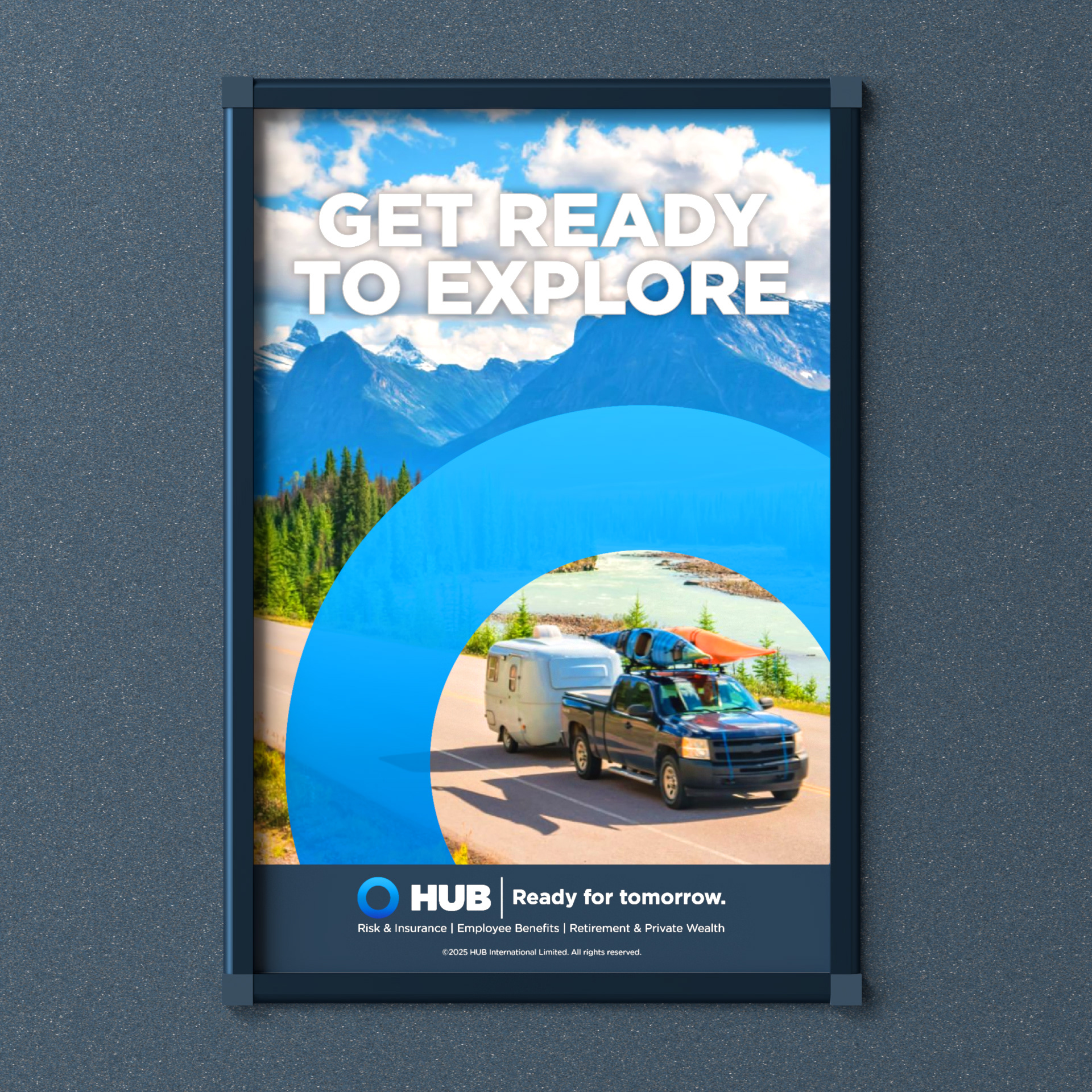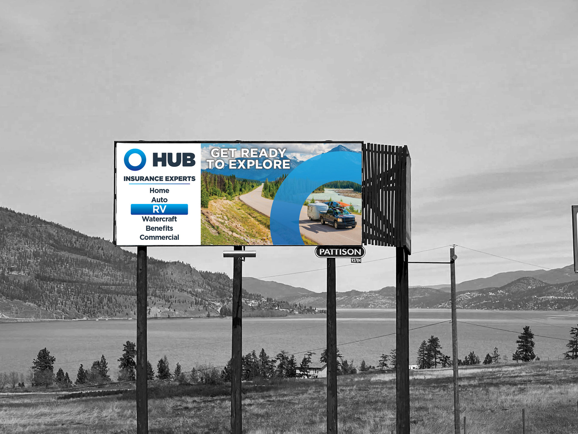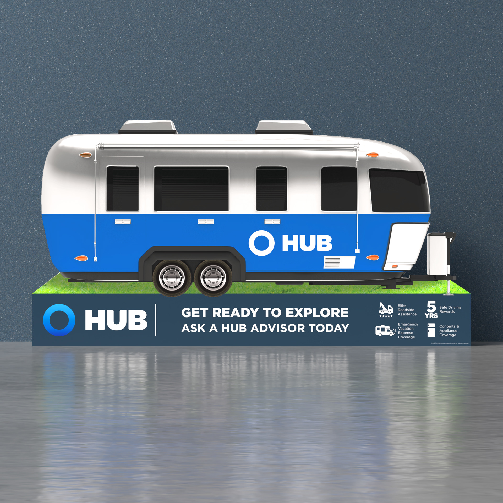 This was the third campaign series for HUB that helped allow a full season of dominance in the insurance market. It followed the Watercraft campaign and reminded consumers of the upcoming July/August recreational vehicle season. The included POS tools much like the other campaigns had posters, decals, tent cards, and two flagship pieces that were a large standee and a billboard.