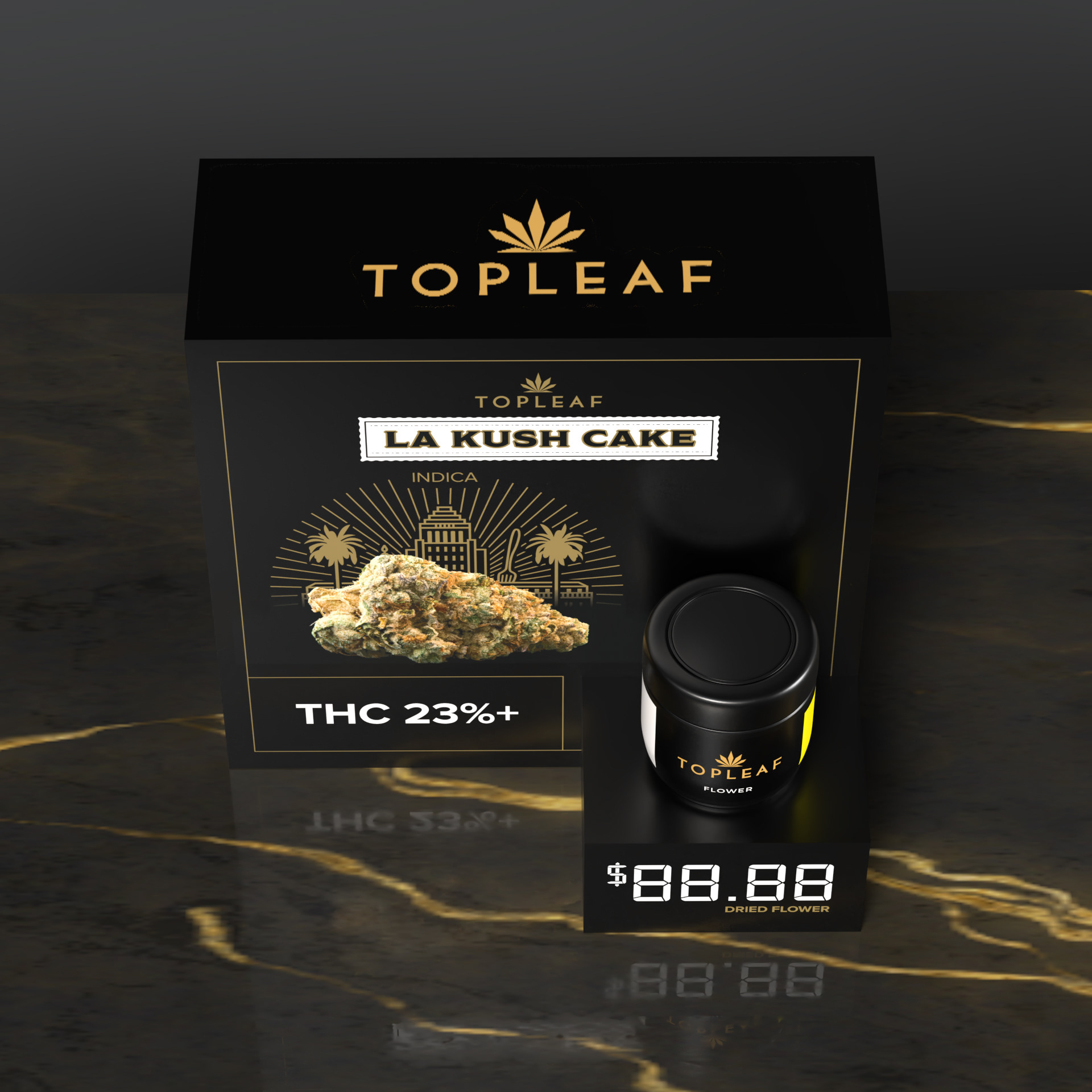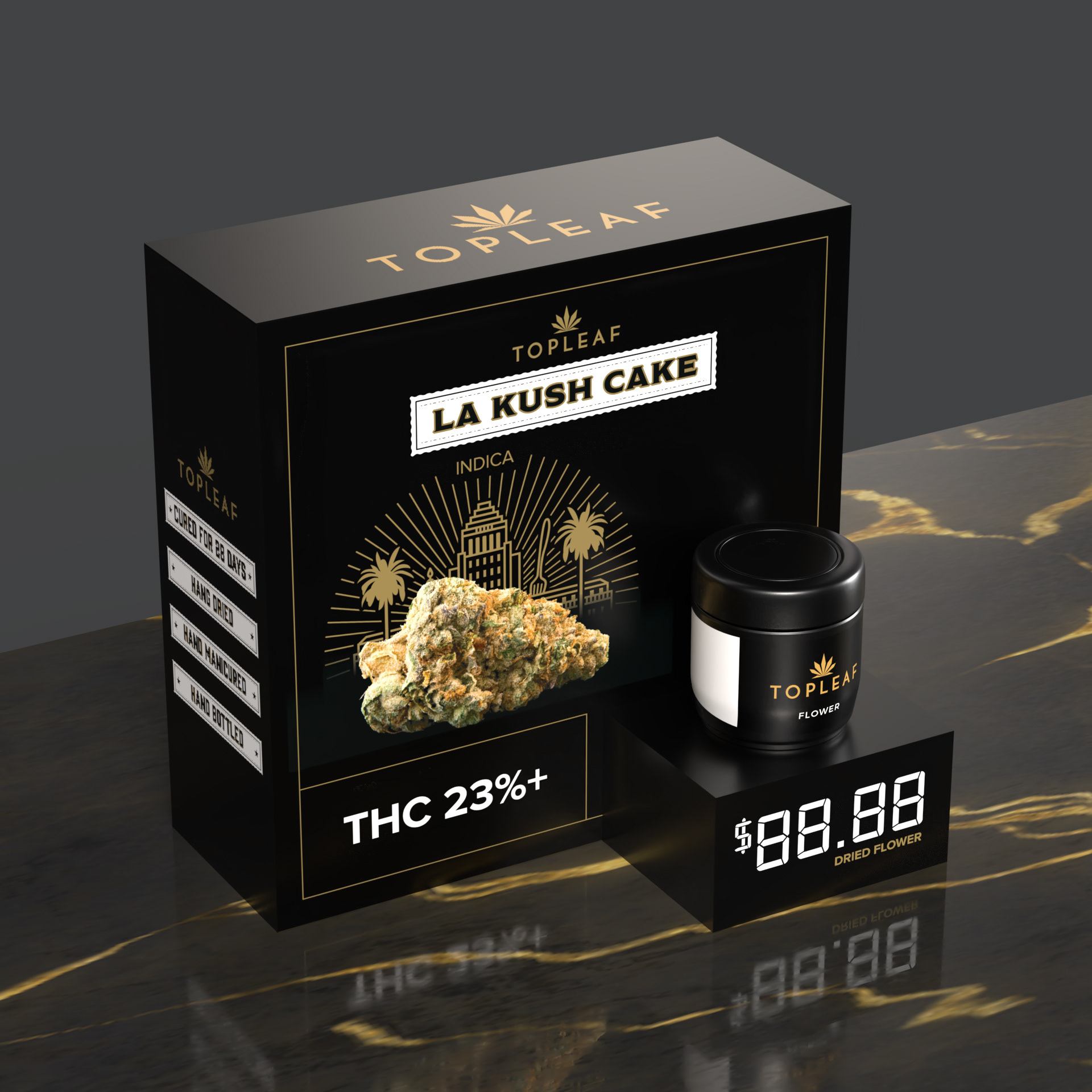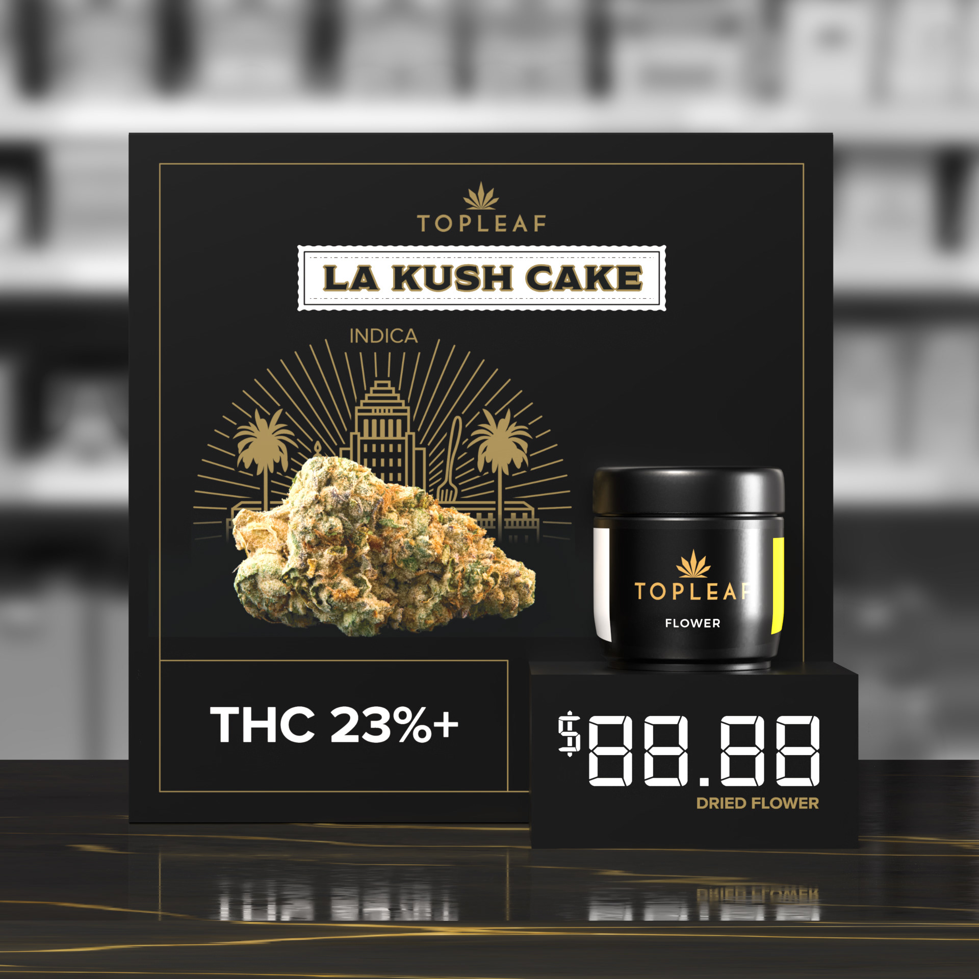 Like the Top Leaf Large Pre-Packaged Display, this smaller version is an even lower cost option that is still premium looking and eye-catching. It is designed for high visibility locations, such as the cash or areas where the large version